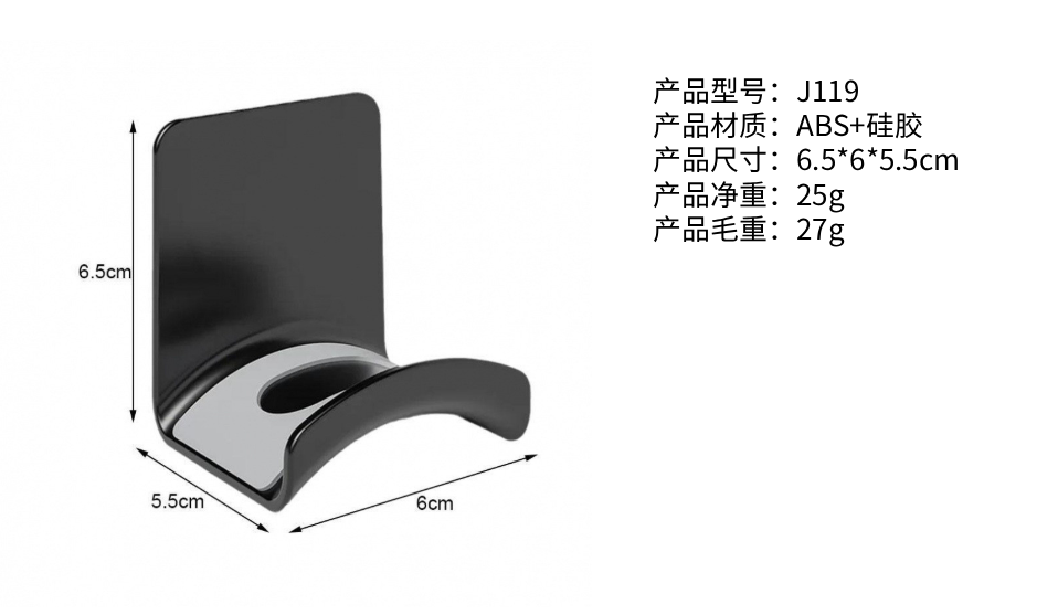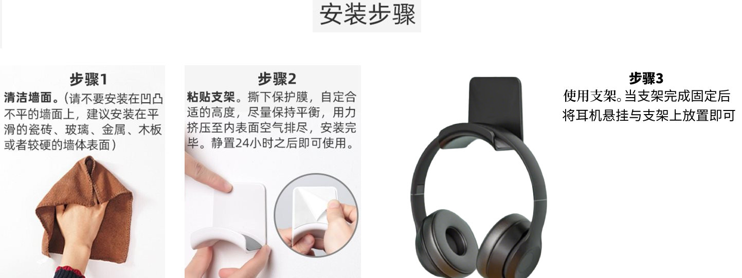 ABS免打孔支架,安装更简单,可用于悬挂耳机/衣服/帽子等实现多用途,悬挂方式相比桌面耳机支架更节约空间